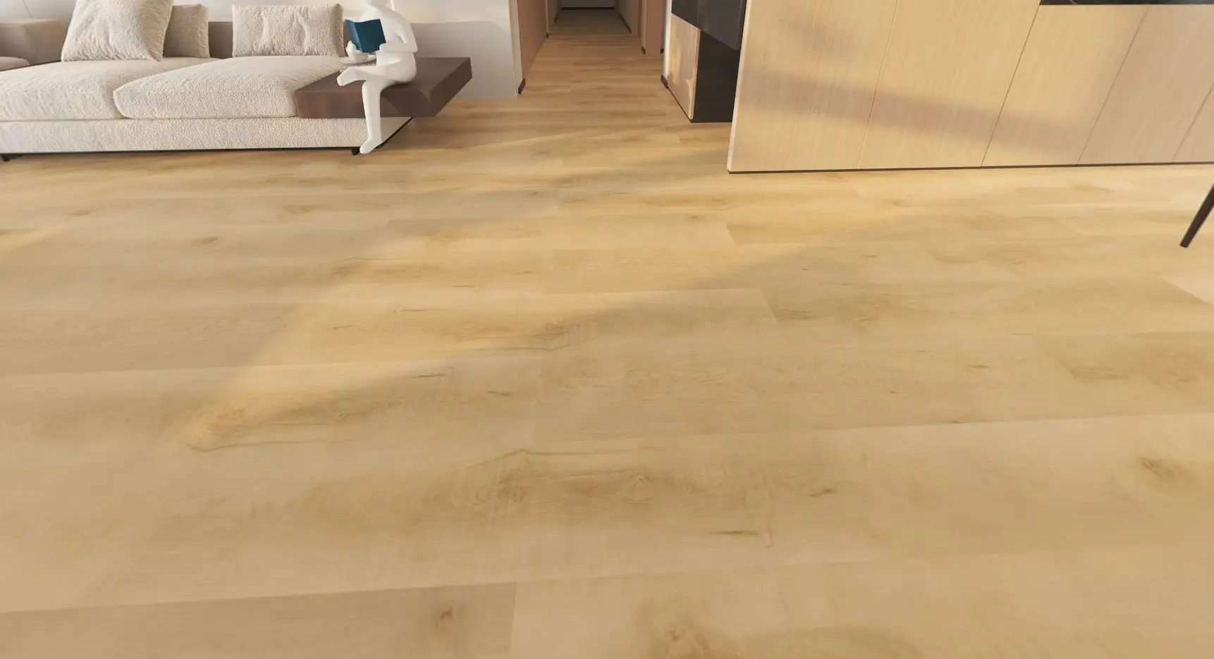 Quiet & Comfortable: The resilient WPC core features dense buffer pores that absorb impact and reduce noise, providing a soft, cushioned feel underfoot.