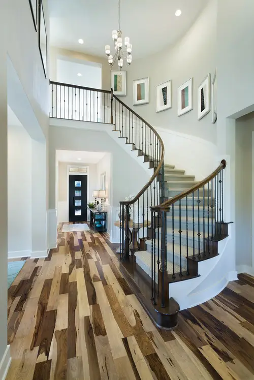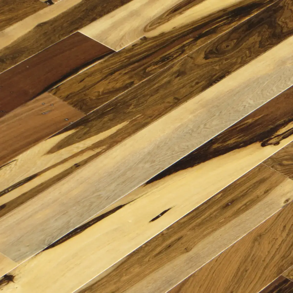 Bring a certain finesse and personality to your home with exotic Brazilian Pecan hardwood flooring. Also referred to as Macchiato Pecan, this South American wood species exhibits strong color variations mimicking the look of premixed coffee and cream. This Brazilian Pecan hardwood flooring comes coated with an impressive factory applied aluminum oxide polyurethane finish that is designed to resist scratches and protect against abrasions. As with most South American exotics, Brazilian Pecan features a high hardness rating. The high contrast color swirls of Brazilian Pecan range from a silvery pale hue to a reddish brown to an almost jet black. The resulting mix is a stunning pattern that is a true wow factor.