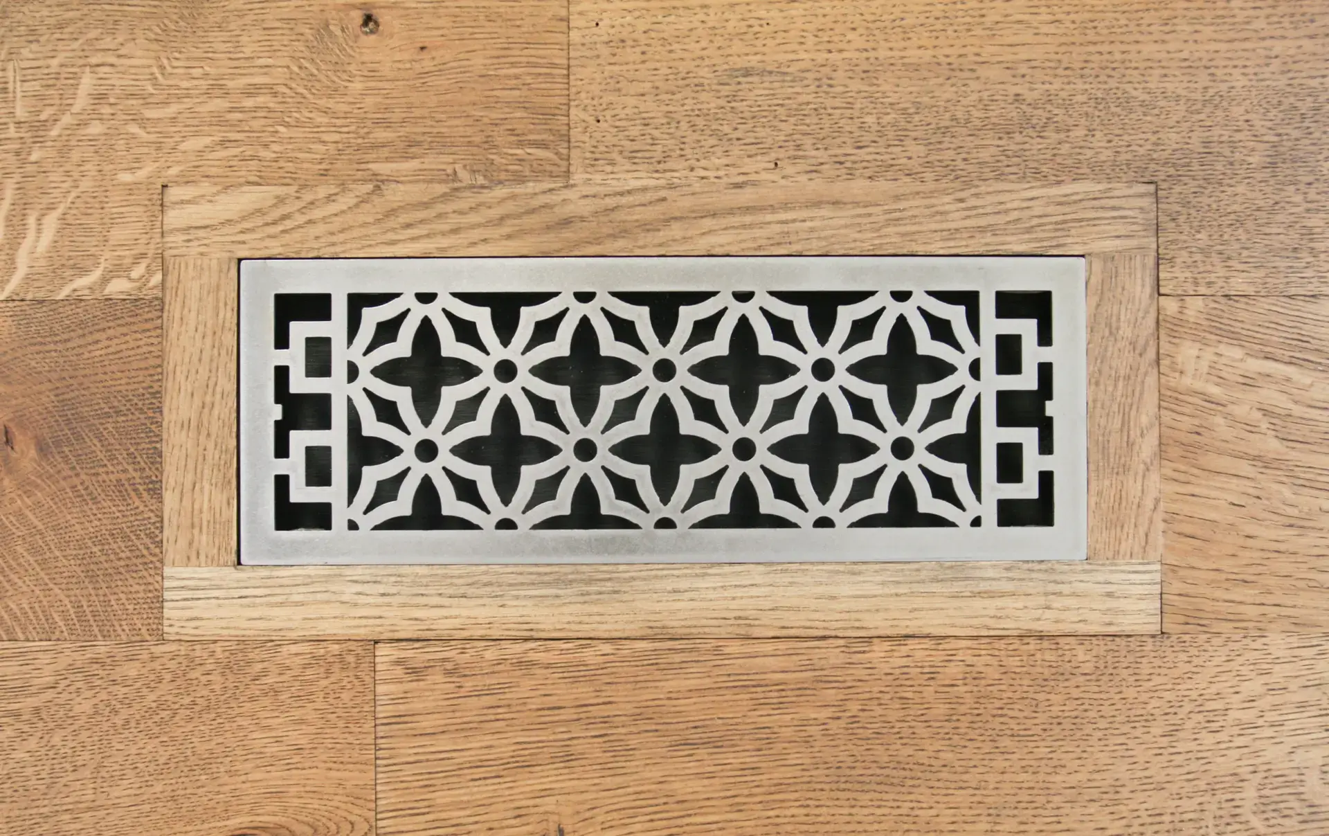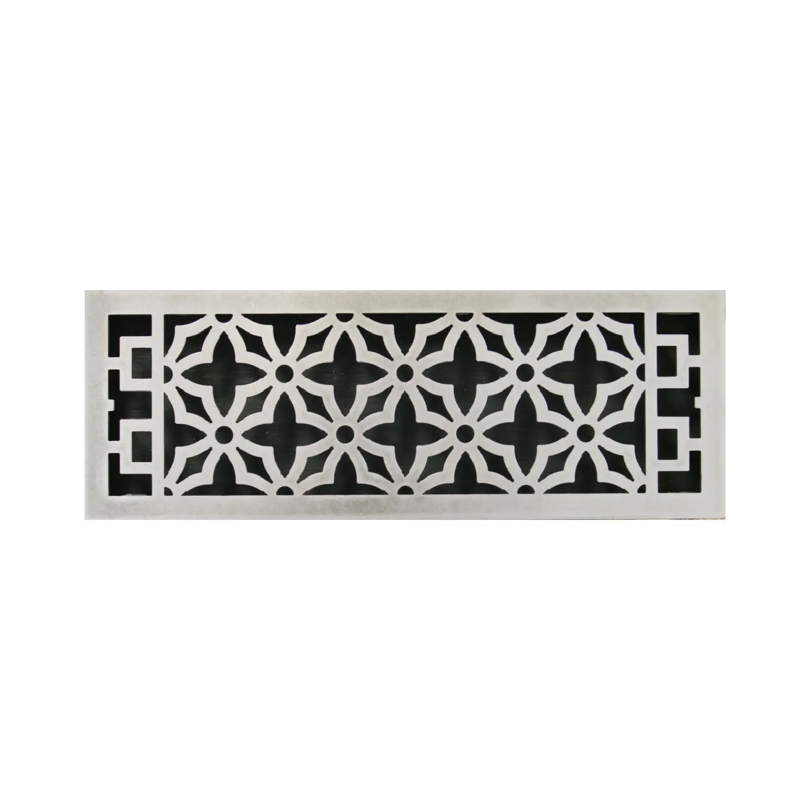 Eternal Collection floor vents are made from precision lazer cut carbon steel. This vent offers a sturdy yet unobstructive design when flush mounted to your hardwood flooring.Simply router a frame out of your hardwood flooring. These vents offer ample airflow while providing a distinct contrast with hardwood and turns your air vents into a work of art. Adjustable height allows this vent to fit 1/2″-3/4″ thick hardwood or tile flooring.