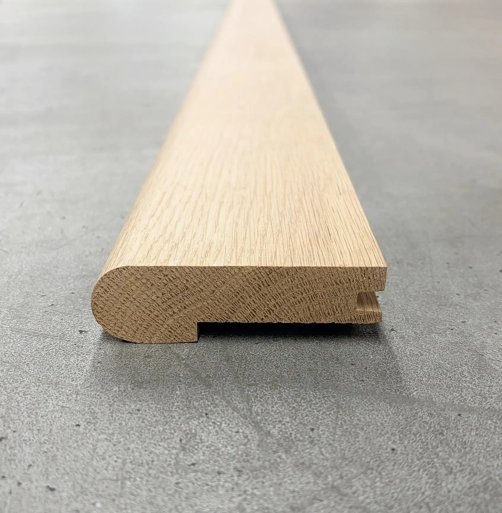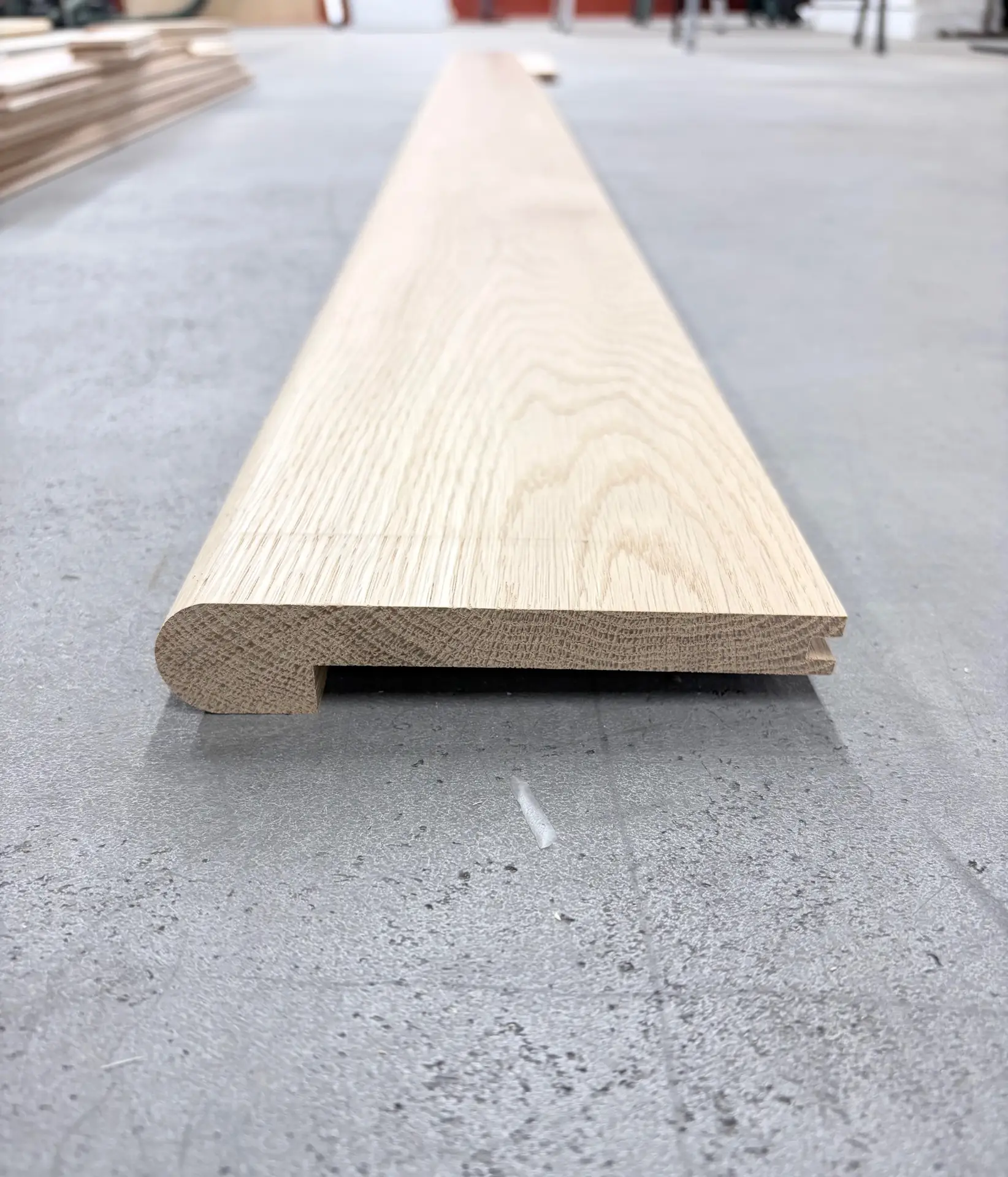 Unfinished White Oak Stair Nose is designed for nail-down and glue-down hardwood installations, providing a durable and seamless transition at stairs, landings, and elevated edges. Crafted from solid white oak, this flush mount bullnose can be sanded and finished on-site to perfectly match your flooring, ensuring a clean, cohesive look.