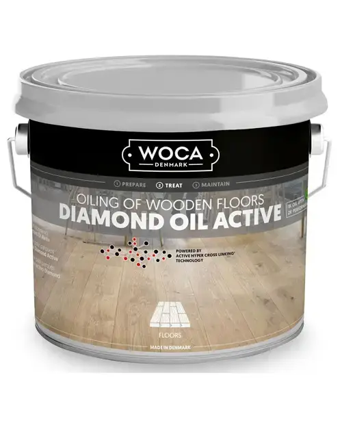 WOCA Diamond Oil Active is a single-component, extremely durable penetrating oil. Made from plant based materials, providing a low odor, safe wood finishing product that is free of isocyanates.